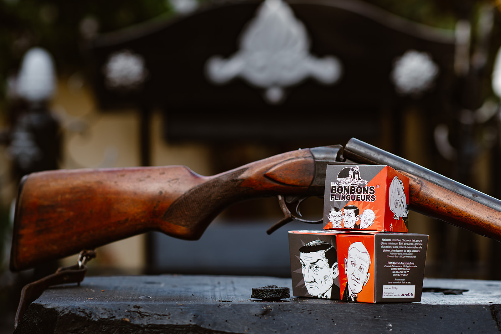 Les bonbons flingueurs sont confectionnés avec nos savoureuses noisettes. On est ravi de contribuer à ce bel hommage au film « les tontons flingueurs » de Lautner grâce à @patisseriealexandres. Jérôme et Nathalie des passionnés qui partagent notre philosophie du local et du bon et font rayonner notre cher Montauban! Découvrir cette noisette croustillante au chocolat au lait formant un bel équilibre.Poids: 110GR