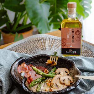 Parsème de noisettes torréfiées concassées, de quelques champignons poêlés et d’un joli filet d’huile de noisettes. Et voilà !